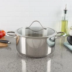 American Trading House, Inc. Gourmet Chef 6 Quart Stainless Steel Stock Pot With Glass Lid