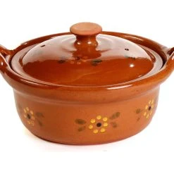 Ancient Cookware, Mexican Clay Lidded Cazuela Pot, 8.5×10.5×5