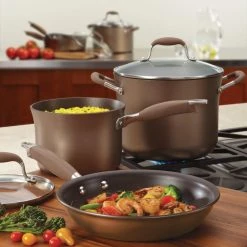 Anolon Bronze Hard-Anodized Nonstick 2-Quart Covered Straining Saucepan, Pour Spouts