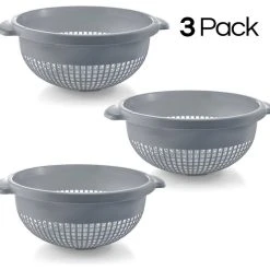 Ybm Home Inc. YBM Home Plastic Round Deep Colander Strainers, 14 Inches. (3 PACK), Gray