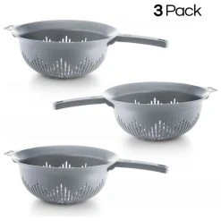 Ybm Home Inc. YBM Home 9.75 In. Deep Plastic Strainer Colander Use For Pasta, 3 Pack, Gray