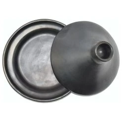 Originally from North Africa, a Tagine is the name of a dish as well as the conical pot in which it is cooked. Our version of the pot comes from La Chamba and it is a beautiful Black Clay Version. Length 12 in x Width 12in, Height 7.0in (to the top of the cone), Diameter 12in, Capacity 24 oz. The Tagine can be used on a stovetop, both gas or electric, an open fire as traditionally used, and it can be placed in the oven. Completely natural and safe, contains no toxins or lead and the porous nature of the clay allows the slow evaporation of steam and produce food that is healthier, tastier, and moist using less fat and liquids. Will last many years with proper use and care (each piece comes with a product information sheet outlining the Uses and Care for the product). It is still made in the traditional black clay manner, by families in a small village on the banks of the Magdalena River in Central Colombia. Each piece is hand-made using local area clays, then hand burnished with a stone. The pieces are then fired in the village, giving them the distinctive black color and elegant look.