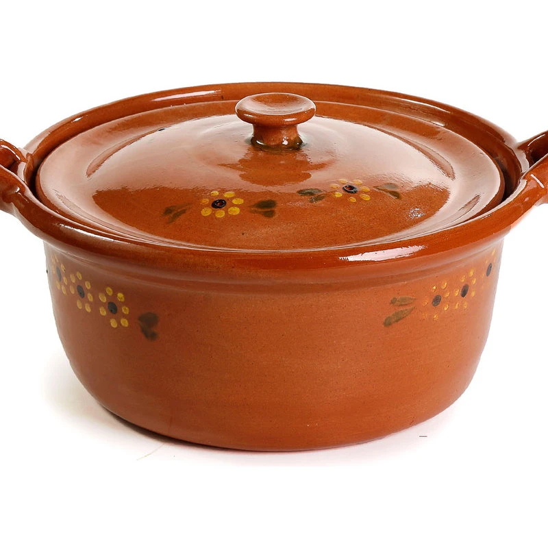 This Lidded Cazuela is great for making soups, stews, and other casserole-style dishes, and it s because of its beautiful glazed finish, it can be taken directly to the table to make a dramatic presentation. Length 15in (including handles), Width 11.5in (from outside), Height 7.0in, Diameter 11.5in and Capacity 4.5qt (filled comfortably without overflowing). Will last many years with proper use and care (each piece comes with a product information sheet outlining the Uses and Care for the product). As with other clay cookware, the flavor of the food cooked in it actually improves with use. Completely natural and safe, contains no toxins or lead. In the semi-desert region of Hidalgo, Mexico, our cazuelas are made by hand by artisans whose craft has been handed down for several generations.