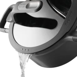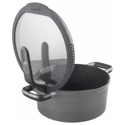 With a focus on style and practicality, this 8″ casserole with stay-cool handles and a clear glass lid is a must-have in every kitchen. Just place it on any kind of stovetop and cook with little to no oil thanks to the multilayered non-stick coating that ensures an easy food release. When you use the casserole to boil potatoes, vegetables or pasta, you’ll no doubt appreciate the special pouring rims and the lid that features two different sized pouring areas for precise straining of all kinds of ingredients. An added bonus is that the lid can be positioned vertically on the body of the pot so you’ll always have a free hand to stir and serve. Suitable for all cooktops including induction. Inside dimensions: 8x8x3.75 / Outside dimensions: 13×8.5×6.25