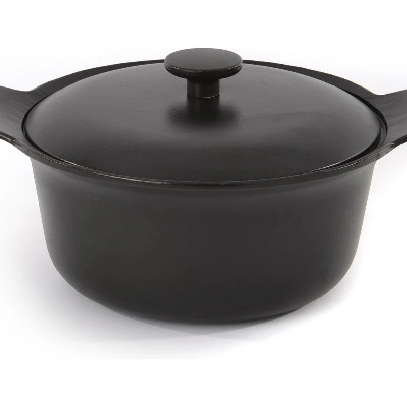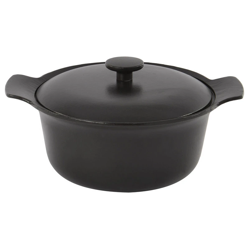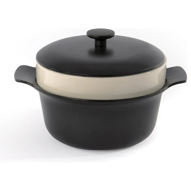 10″/4.4qt Black Covered Stockpot is made of Cast iron which has great heat retaining abilities: it’s the perfect choice for slow cooking and for hearty stews prepared in the oven or on the stovetop. The cover locks in the moisture and small bumps on the interior make sure the evaporated juices are directed on to the food for extra tasty results.