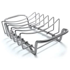 The Stainless Steel Rib & Roast Rack offers a premium accessory for use with your grill. The Broil King Imperial professional rib and roast rack accommodates five racks of ribs within a high grade stainless steel wire frame for superior durability. The multi-use design also accommodates large cuts of meat for roasting on the upper concave wire structure, while oversized 10 mm handles support the entire rack and allow it to be easily transferred from one part of the grill to another.