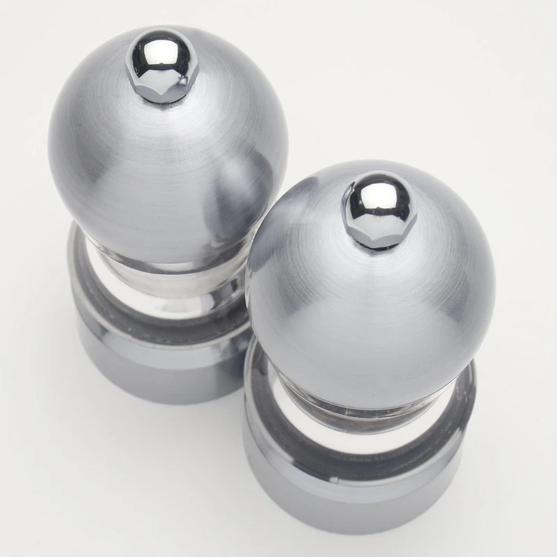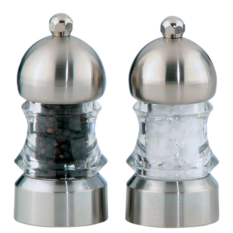 The Metro 3.5″ pepper mill and salt mill set is one of our most popular models. The acrylic bodies are trimmed with a brushed stainless steel finish on the top and bottom. Both mills are fitted with a ceramic grinding mechanism. The grinding mechanisms carry a limited lifetime guarantee. This guarantee does not cover normal wear, accidental damage, or any use not in accordance with the instructions provided.