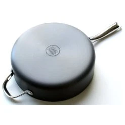 Cooks Standard Hard Anodize Premium Grade Nonstick 5-QT/11-inch Deep Straight Sauté Pan with Cover, cover is tempered Glass lid, protected by stainless steel rim outside of glass and Ergonomically designed Stainless steel handle, riveted for strength, premium grade nonstick deliver exceptional performance, Heavy gauge aluminum core is super heat distribution without any ” Hot spot”.