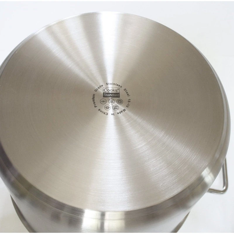 What’s in a box: 20QT (Quart) Stockpot with Lid, Cooks Standard Professional Grade Stainless Steel Stockpot with Lid, Heavy-Duty, 18-8 Stainless Steel, Induction Ready, 3-PLY bottom with 5MM thick aluminum core.