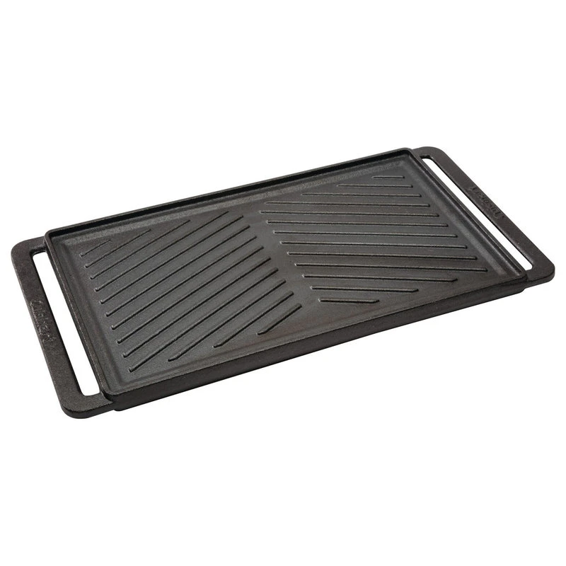 Unlock greater cooking versatility with the Cuisinart reversible cast iron grill/griddle plate! This heavy duty, cast iron plate features a ribbed grill on one side and a smooth flat top on the other. Use the grill side to get a restaurant-quality sear with the beautiful grill marks to match. Use the griddle side to cook up some bacon and eggs in the morning, paninis in the afternoon, and flip it over to sear steaks for dinner. The cast iron construction provides maximum heat retention with even heating across the surface. The plate fits perfectly on your grill to sear more delicate foods like fish and veggies and can also be used indoors on your stove top over 2 burners.