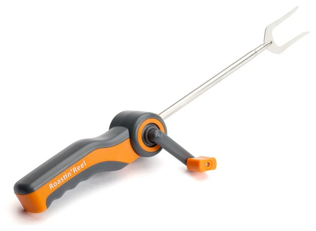 The S’MORE to Love Roastin’ Reel is a fun and easy way to roast marshmallows and hot dogs over an open fire. Roast marshmallows, hot dogs, sausages, and more! The reel rotates the fork for consistent roasting and the fork extends from 8 to 20 inches. When you’re done roasting s’mores, just remove the fork and toss it in the dishwasher. Fun. Easy. Convenient. What s’more to love??