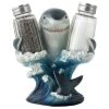 How could anyone possibly resist this charming tabby kitty cat figurine holding a set of salt and pepper shakers? This adorable kitten is certain to add a bit of cheer to each meal, while helping to keep your seasonings within easy reach. What a smart way to decorate your dining room table! This orange tabby cat figurine makes a great gift for cat owners or anyone who collects pet decor. This set of three pieces includes one cat sculpture salt & pepper holder and two glass s and p shakers.