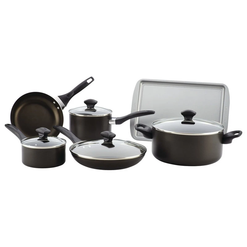 Get any kitchen started in quality and style with the Farberware Dishwasher Safe Nonstick 15-Piece Cookware Set, and leave cleanup to the dishwashing machine. Sturdy, dependable cookware and bakeware construction heats quickly and evenly for quality results.
