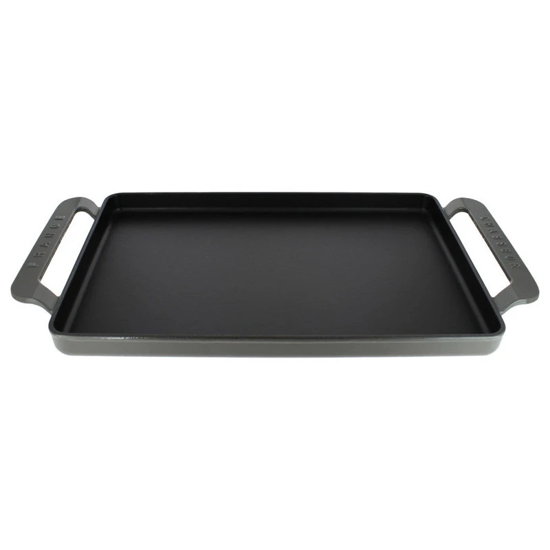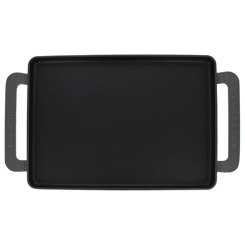 The Chasseur Cast Iron Griddle is perfect for cooking delicious burgers, shellfish, roasted vegetables and fluffy pancakes. This griddle is constructed of thick cast iron to maintain its temperature and evenly distribute the heat for optimal cooking conditions. The exterior is treated with multiple layers of enamel to ensure many years of use.