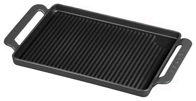 The Chasseur Cast Iron Rectangular Grill Pan is perfect for grilling steaks, delicious burgers, shellfish and roasted vegetables. This grill is constructed of thick cast iron to maintain its temperature and evenly distribute the heat for optimal cooking conditions. While cooking, ridges allow excess fat and grease to drain.
