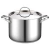 This 12 piece cookware set is made from high quality stainless steel. Each pan comes with a 3 layered thermal bottom with heat conduction. This heat technology helps food heat quickly and retains heat well. This set is suitable for all cooking sources: electric and gas stoves, or glass or ceramic burners.