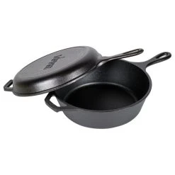 Enjoy the superior taste that well seasoned cast iron cookware offers without all extra the effort when you use this pre-seasoned griddle and Dutch oven combo from Lodge. Part of their renown Logic line, this combo cooker can be a skillet, a fryer, a dutch oven, or the lid can convert into a griddle. No matter the location, the uses for the Lodge Combo Cooker are endless. Made in the USA, this combo cooker can even be used right out of the box.