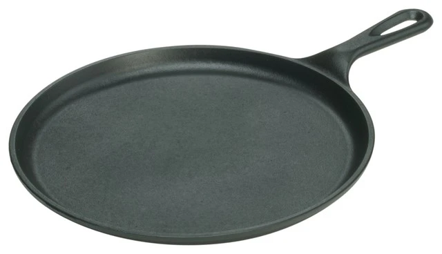 Enjoy the superior taste that well seasoned cast iron cookware offers without all extra the effort when you use this pre-seasoned griddle from Lodge. Part of their renown Logic line, this pan has a long handlefor added convenience. The even heating of a Lodge cast iron griddle pan is essential for big breakfasts, quesadillas, roasted vegetables, or grilled sandwiches. Made in the USA, this griddle pan can even be used right out of the box.
