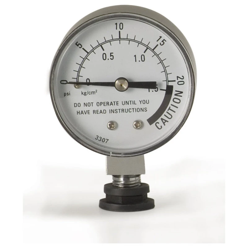 The steam gauge registers pressure readings during canning and cooking. Includes gauge, rubber washer, metal washer, and nut.
