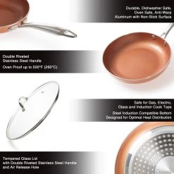 COMPATIBLE FOR ALL COOKING SURFACES- The 12 frying pan has a convenient tempered glass see through lid and a specially designed thick induction compatible magnetic bottom for even heat distribution to efficiently create delicious and savory meals