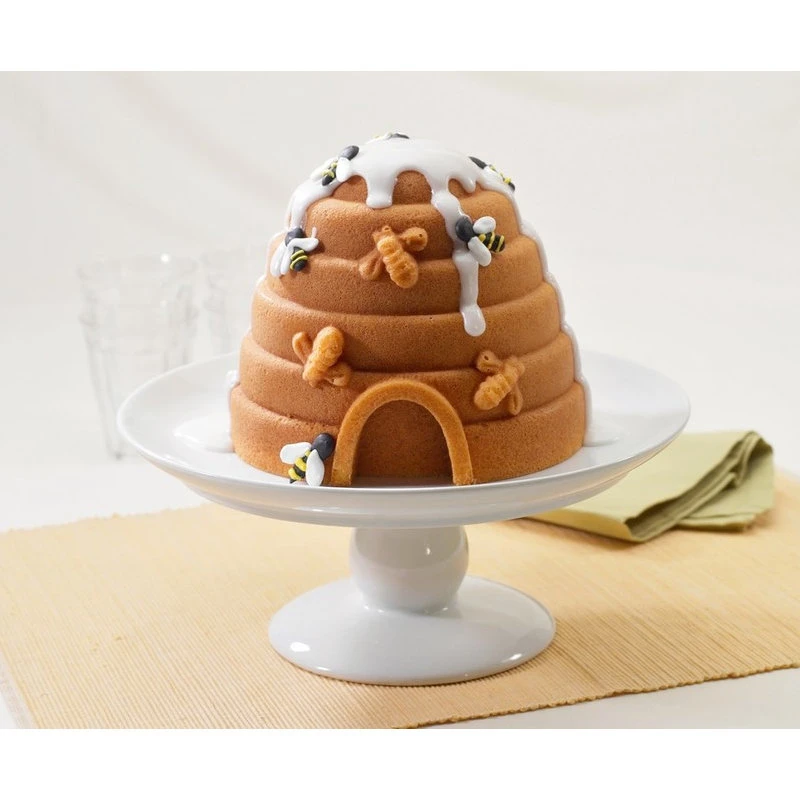 Make a delicious honey orange flavored cake with this Beehive cake pan from Nordic Ware. Made from cast aluminum, this pan is perfect for a springtime celebration. In the shape of a beehive with bees all over, this mold joins together to make a 3D cake that will wow your guests. The baking surface is nonstick for easy release, and it has helper handles for transporting. This cake pan was made in the USA and has a manufacturer’s lifetime warranty.