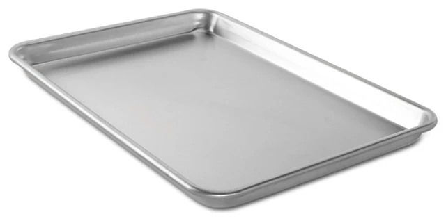 Bake up a delicious dessert with this jelly roll pan from Nordic Ware Naturals Aluminum. Made of aluminum this pan is ideal for baked veggies French fries muffins cookies cakes and more. This standard jelly roll pan size is slightly smaller than a traditional half sheet. Made in the USA and backed by a manufacturer’s limited lifetime warranty this pan is the perfect addition to any kitchen.