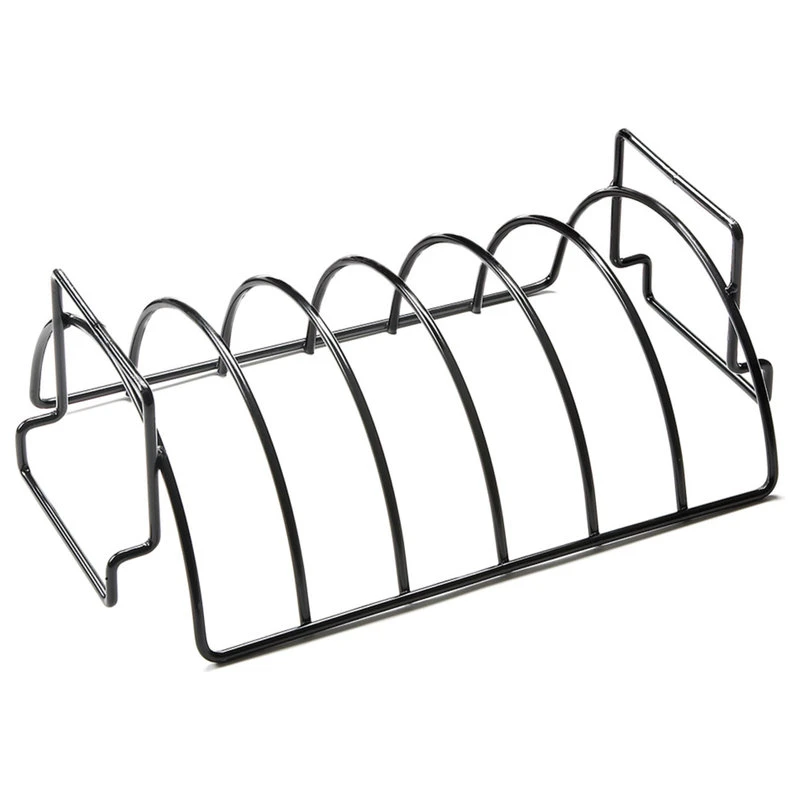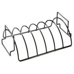 Reverse your style with the dual rib rack & roaster. Position rack upright to cook 6 slabs of ribs, or flip it over to cook turkey, chicken & roasts. Made of carbon steel, the rack’s elevated design allows air circulation for even-browning and its PTFE/PFOA free nonstick coating makes for easy clean up. For use in the oven or on the grill, the rib rack has built-in handles for easy transport. Grill ribs, roast or turkey with this Reversible Rib & Roasting Rack.
