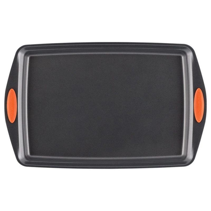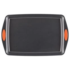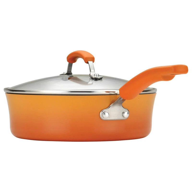 This Rachael Ray Porcelain 14-piece cookware set offers superior performance in fun colors and durable materials. The nonstick interiors provide impeccable food release for easy cleanup. The sturdy construction promotes even heating, helping to reduce hot spots that can burn foods, and the hard enamel exteriors in a fun two-tone gradient hue are not only colorful, but also durable. The rubberized dual-riveted handles offer strength and a comfortable grasp while cooking, and are oven safe to 350 degrees F. The set even comes with must-have accessories that are dishwasher safe. The Oven Lovin’ crispy baking sheet is coated in convenient nonstick and is oven safe to 450F. Turn, flip and scoop with a spatula, a spoonula and a Lil Devil a spatula with a pointed edge that can get into places other spatulas cant. These three handy tools are heat safe to 500 degrees F.This hard enamel cookware is durable and dependable, heating food evenly and reducing hot spots.