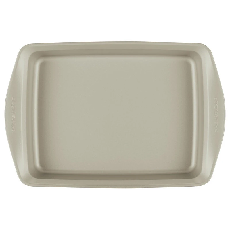 Turn up the heat and bake some excitement with the Rachael Ray 3-Piece Silver Nonstick Bakeware Set.Sturdy steel rolled-rim construction provides dependable and long-lasting baking and roasting performance.