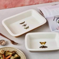 Make sure your bakeware takes centre stage with our beautiful Botanic Garden Harmony Large Roasting Dish. Inspired by iconic Botanic Garden motifs, this ceramic dish features striking butterfly and bee designs and is sure to elevate your dining table. Designed to bring a retro look with a modern twist to your kitchen, the elegantly decorated dish is versatile and designed for everyday use, moving seamlessly from oven to table and then to your dishwasher for easy cleaning. Mix and match with other items from the Botanic Garden Harmony range such as the stone-colored Small Roasting Dish and the forest green Loaf Pan for a bakeware collection that will be the envy of your friends.