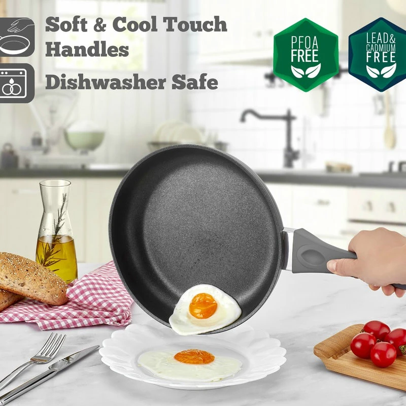 - ECO-FRIENDLY: The Saflon QuanTanium fry pan is dishwasher-safe and nonstick in addition to being PFOA-free, lead-free, and cadmium-free.