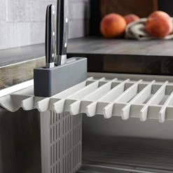 Strain anything with this durable colander from Tovolo. Fabricated from stainless steel, it features small holes that keep food from escaping. It also has two stainless steel helper handles and a footed bottom, which gives the colander balance and sturdiness. Best of all, it is rust proof and dishwasher safe for easy cleanup.