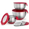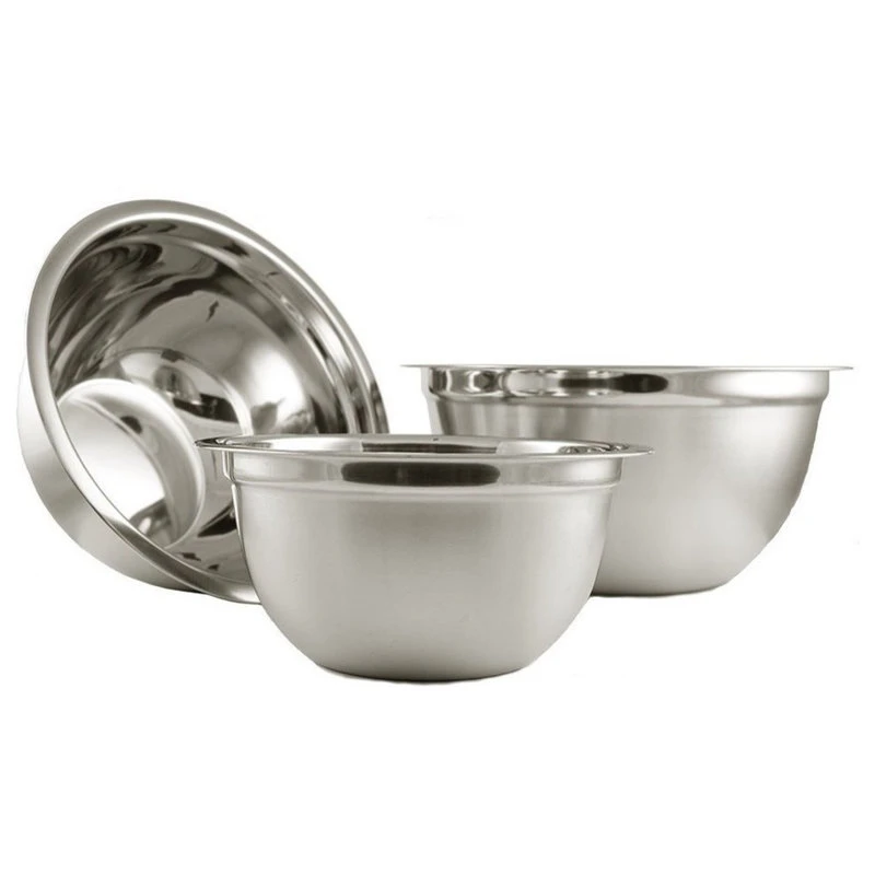 Stainless steel mixing bowl set is a kitchen essential for any good cook trying to become a great one! Stop relying on shoddy, beaten-up bowls in your kitchen. This set offers you an abundance of high-quality stainless steel mixing magic that is easy to clean, sanitary, and ridiculously durable. Perfect for home, these metal mixing bowls are rugged enough to stand up to everyday use without suffering any undue damage or wear and tear. With four bowls ranging from 5 to 13 quarts you can be confident that you’ll always have exactly the right size for all of your well-mixed masterpieces! So grab your set today and get ready to start cooking up a storm tomorrow! In stock and ready to ship .The 3 piece set includes Size 3 Qt 8 inch, 5 Qt’ 10 inch, and 8 Qt’ 12 Inch. Made of durable, sanitary stainless steel.