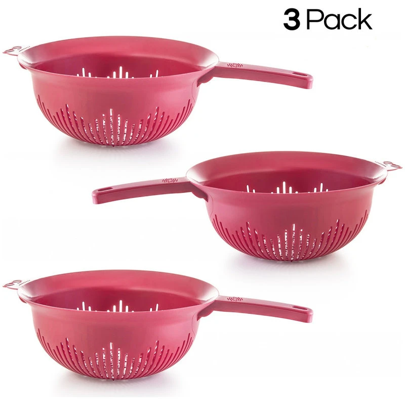 Ybm Home Inc. YBM Home 9.75 In. Deep Plastic Strainer Colander Use For Pasta, 3 Pack, Red