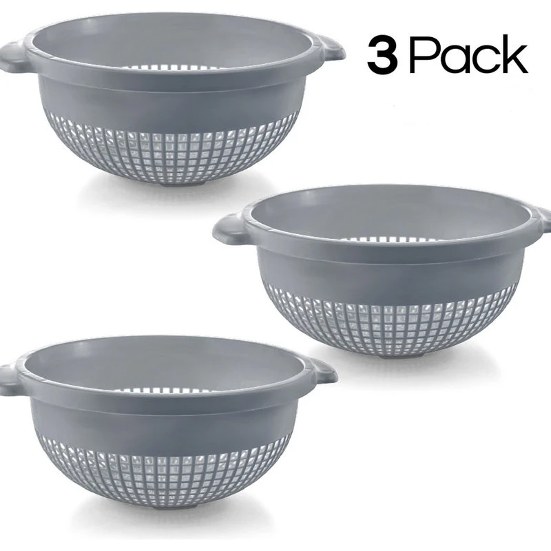 A useful addition to any kitchen. These simple and functional plastic colanders features deep round bowl design that allows you to strain, rinse, or wash large quantity of spaghetti, pasta, noodles, vegetables, and more. The square holes are optimized for water to flow through, thus speeding up the straining process. It is 100% BPA free plastic material so you never have to worry about toxic things going on your foods.