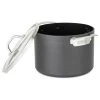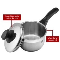 The pot’s bottom contains an encapsulated aluminum core between these layers of stainless steel which eliminates those pesky hotspots and distributes heat quickly and evenly.