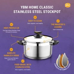 The YBM Home stockpot comprises the state-of-the-art multi-layered stainless-steel construction that provides fuel-saving energy performance to cook foods with exceptional results.